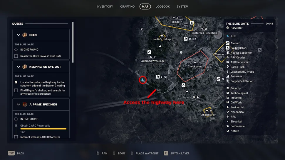 Go to the south of Blue Gate, near the extraction lift and the area known as Highway Collapse. If you're new to the area, check our Blue Gate Map Guide for general orientation. Look for the destroyed elevated highway at the southwest border of the map.